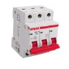 Interruptores termomagnéticos trifásicos para BT. La tensión de servicio es de 400V y la tensión de aislamiento es de 500V. El sistema de montaje es del tipo riel DIN, como también los hay en sistema americano NEMA. Los bornes son para cables rígidos y permiten conectar un cable de 25 mm2 hasta 25 amperes y de 35 mm2. La curva de disparo es lenta del tipo C, disparo magnético entre 5 y 10 la corriente nacional. Su utilización está definida a la protección de la instalación por sobre consumos y corto circuitos en instalaciones eléctricas. Estos pueden ser instalados en la caja de empalme y en tableros de distribución eléctrica.